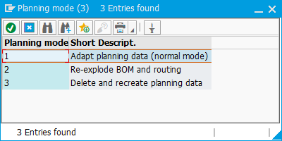 - 3 Delete and recreate planning data - 기존에 계획 데이터를 삭제하고 다시 생성합니다. 예를 들어 MRP Run 의 결과로 Planned order 나 Purchase requisition 이 나왔다고 했을 때 Firmed 된(뭔가 사람손이 타서 Firmed 인자가 찍힌 것) 것을 제외하고 모두 삭제하고 재생성 하는 방법 입니다.