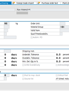 PO 기본단위 단가 구하는 공식구매오더에는 OPU(오더가격단위), OUn(오더유닛), BUoM(기본단위) 세 가지의 단위가 있는데, PO의 단가는 OPU 기준의 단가 입니다. 이를 기본단위 단가로 환산하기 위해서는 아래의 공식을 따르면 됩니다. 기본단위 단가 = NETPR * ( BPUMZ / BPUMN ) / (UMREZ / UMREN ) / PEINH기본단위 단가 = OPU기준단가 * (OUN->OPU 분자 / 분모) / (OUN->BUoM 분자 / 분모 ) / 가격단위예를 들어, 단가 = 40,000 KRW OPU = KGOUN = PKBUoM = G 가격단위 = 1환산계수는 2PK = 5KG , 1PK = 2,500 G 이라면, 40 = 40,000 * ( 5 / 2 ) / (2,500 / 1 ..